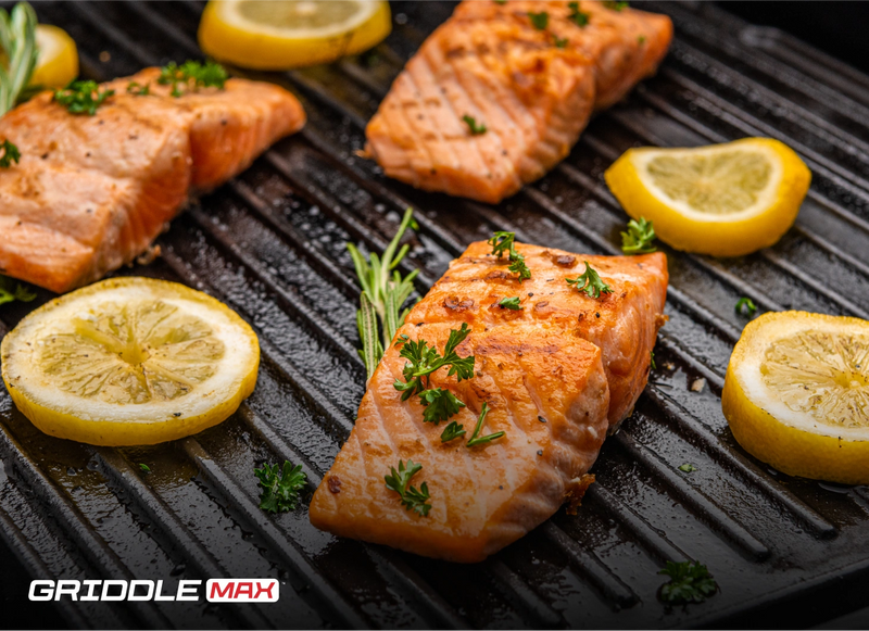 Flip the reversible griddle plate to reveal a ridged surface. Offers even heat distribution for controlled cooking, ideal for fish and other delicate foods.