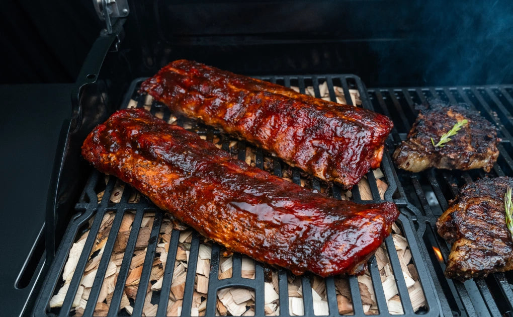 Nest the grates over the griddle plate to create a built-in smoker box. Add your favorite wood chips to produce the same robust, smoky flavor you get with a smoker.